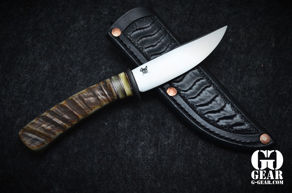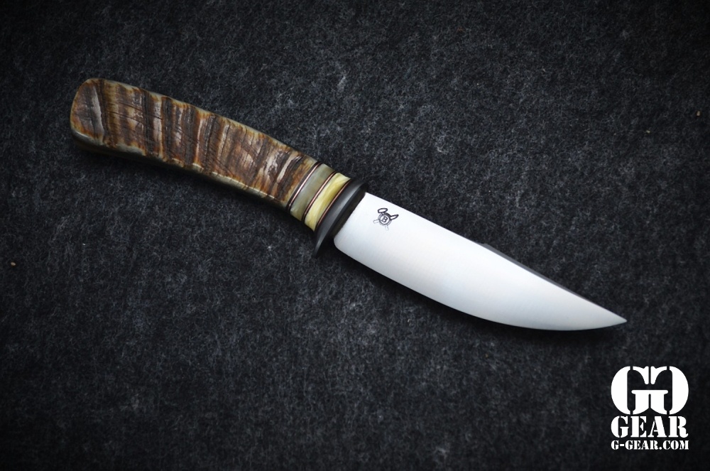 Das Big Horn Pintail ist ein handgefertigtes Behring-Messer - ein elegantes EDC, geeignet für alltägliche Schneidaufgaben sowie den abendlichen Ausflug ins Restaurant. Dieses Messer verdient den Namen Two-Face. Ein traumhafter Griff aus der Schnecke des Dickhornschafs. Eine Seite zart und smooth die andere wild und zerfurcht wie die Landschaft, wo es zuhause ist. Musk Ox Spacer und der brünierte Stahlguard bilden die perfekte Abtrennung zu Klinge.