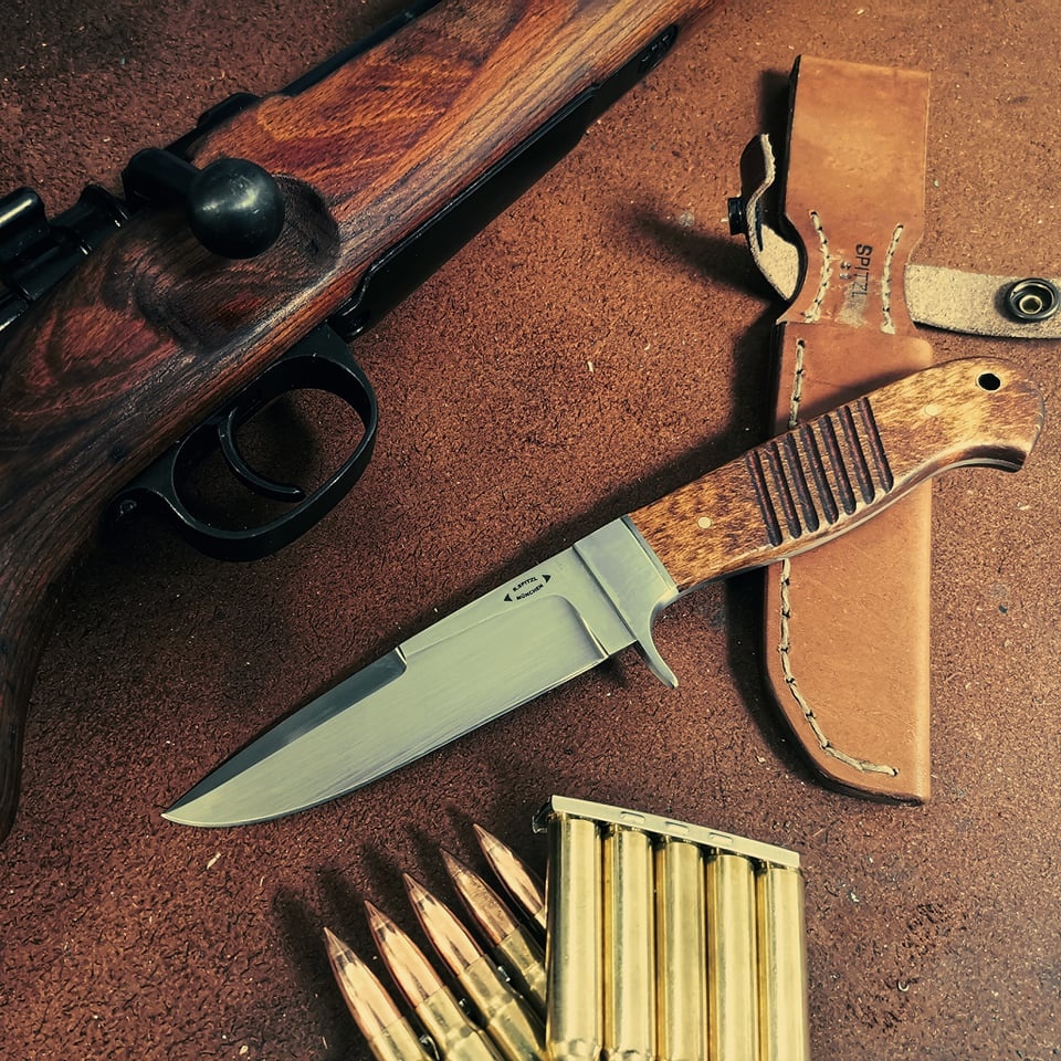 Die Messer werden komplett in Handarbeit hergestellt. Die Anschliffe sind absolut symmetrisch Hohlschliffe und alle Parierelemente sind auf das letzte Zehntel gepasst. Ziel war es, ein absolut hochwertiges Set für Sammler zu schaffen, das aber auch jagdlich eine gute Figur macht.