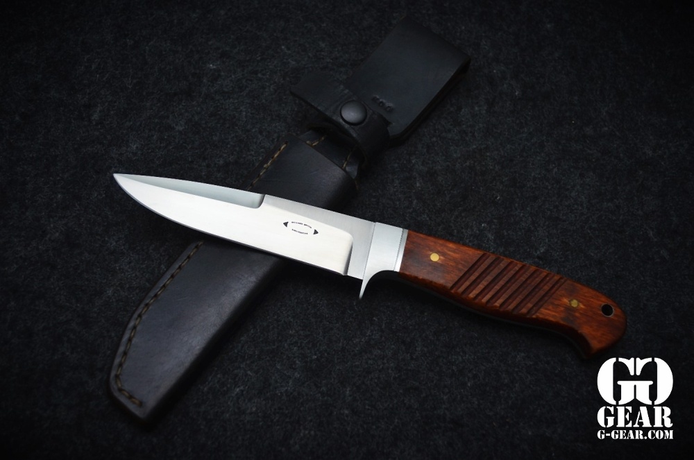 Mit meinem Freund Richard Spitzl, einem renommierten deutschen Messermacher, enstand diese Neuinterpretation des Grabendolchs. Die Griffschalen bestehen - wie viele Mod.98 Gewehrschäfte aus besagter Zeit - aus Buchenholz. Die Krux war es, eine adäquate Beize für das Holz zu finden, da diese seit vielen Jahren aus Umweltschutzgründen nicht mehr hergestellt wird. Durch das Beizen werden die Griffe beständig gegen Umwelteinflüsse und erhalten eine gelb-braune Färbung.